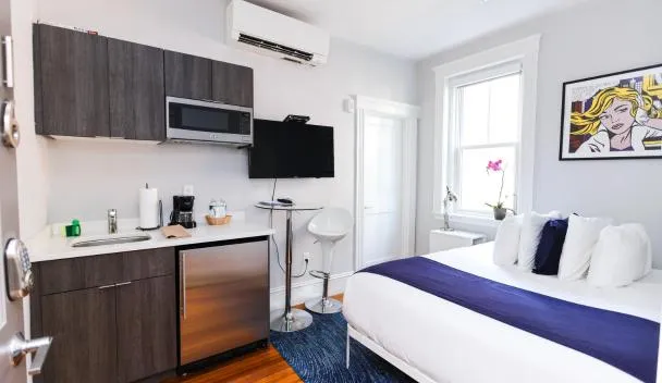 This inn is in Boston's historic Back Bay, one block from the Shops at Prudential Center and subway station. A kitchenette and 42-inch flat-screen TV is offered in every suite. Inn at St.