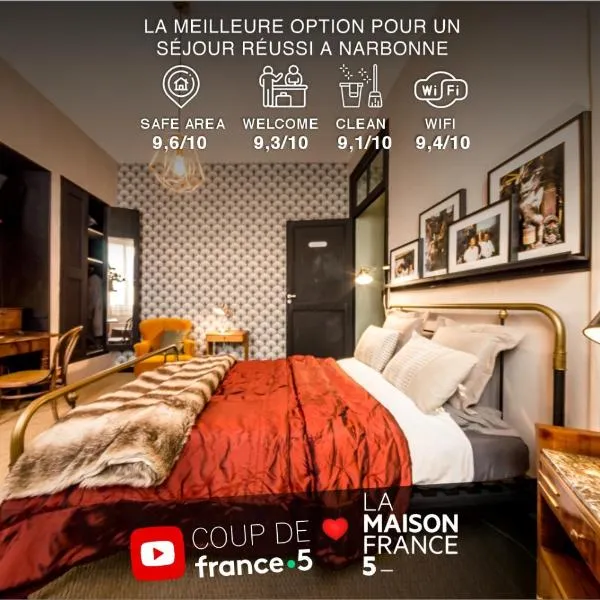 Situé à Narbonne, l’établissement RétroMirabeau - CHAMBRE Suite & APPARTEMENTS de Charme - Localisation Prémium possède un salon commun, une terrasse, un restaurant et un bar.