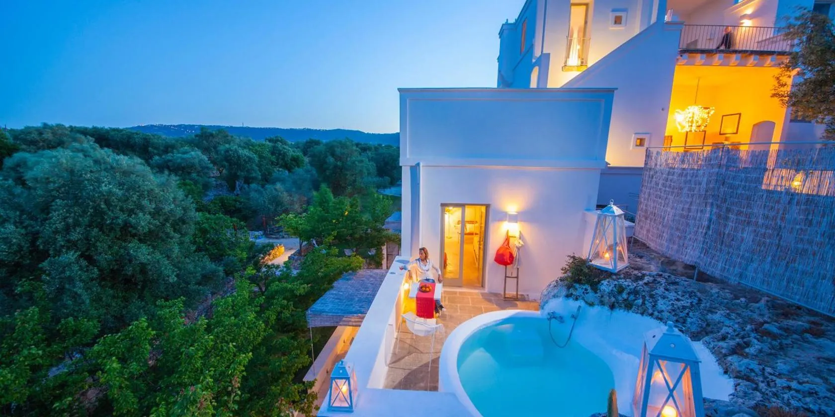 This luxury hotel is set in an ancient watchtower close to the beautiful coast of Puglia. Surrounded by olive groves, it is 3 km from the Savelletri exit of the SS16 national road.