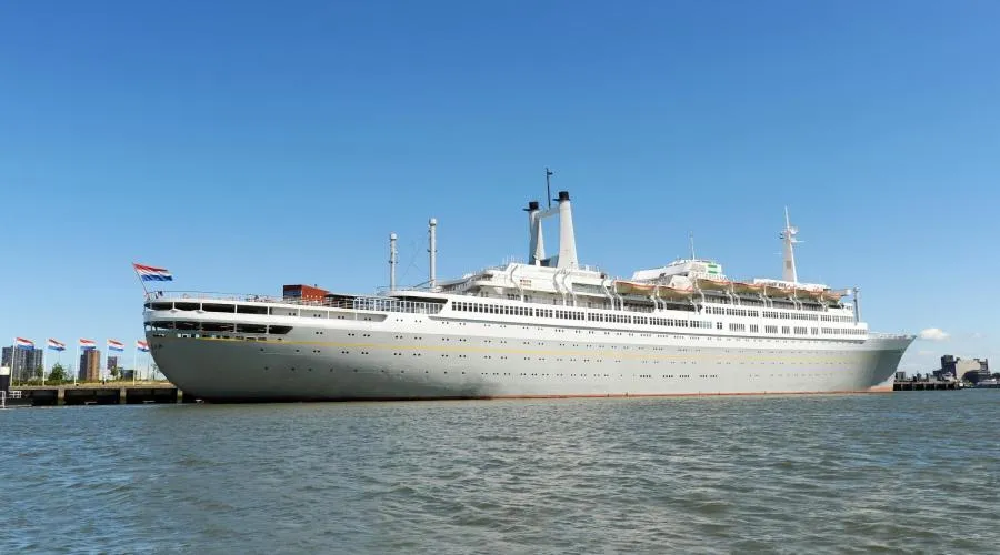 Discover ss Rotterdam, a former Holland-America Line ship, presenting cozy accommodations by the harbor in the vibrant Katendrecht district.