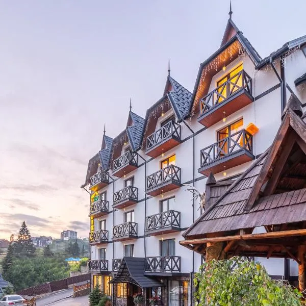 Cet hôtel est situé à Bukovel, à seulement 200 mètres des remontées mécaniques 1R. Il met gratuitement à votre disposition une connexion Wi-Fi et un parking.