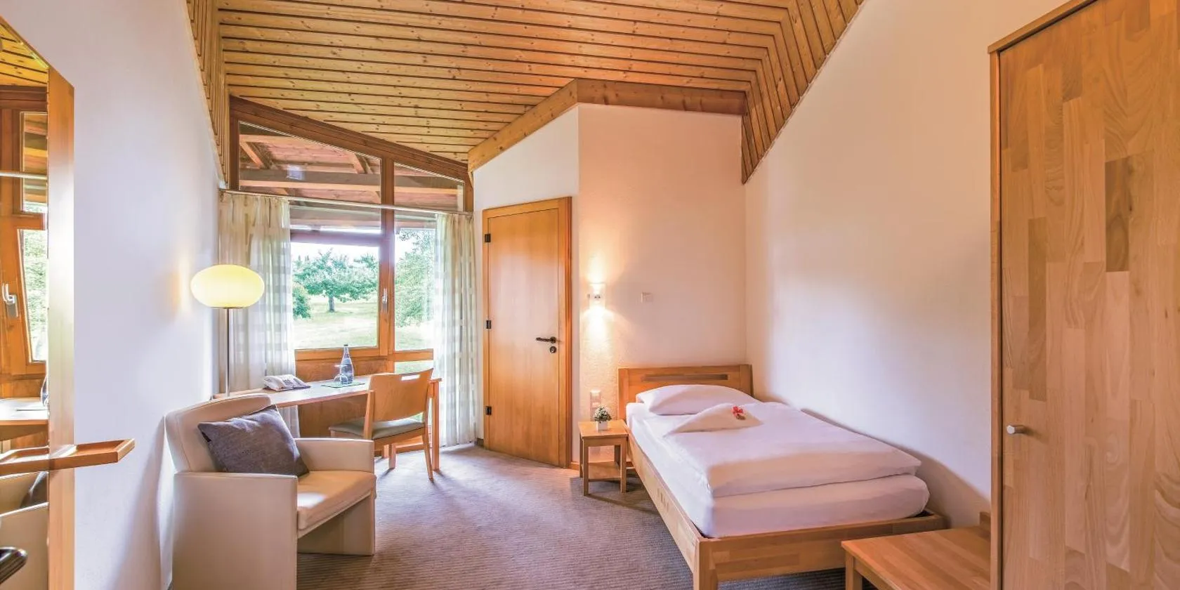 Excellent 👌 We stayed here during the long weekend of the 14th July, as we live in France, and we were extremely pleased. The hotel is in a beautiful setting and you'll have amazing views of the forest from most rooms and from the pool. The pool is also great, and it was one of the things that made us choose this hotel, as we wanted to relax and enjoy the hot summer weather. The staff is 5 stars! From the reception, to the restaurant, everyone was extremely polite, welcoming and friendly. We don't speak German very well, and everyone made us feel comfortable by speaking in English with us (a special thanks to the gentleman that served us dinner both nights!). The hotel is also very clean and comfortable. Our room was spacious, had a lovely garden and we felt at home here. The restaurant is also amazing! Our dinner was excellent, really, with healthy, fresh and rich ingredients, but without all that nonsense new-trend cuisine. We loved it! Also, we think the hotel is a great value if you choose half-board. We think the price of the room, with everything you have access to (spa, pool, beautiful forest...), is extremely reasonable considering the quality food (and generous portions!) you get. Also, lunch/brunch is included (with salads, a lot of fresh and delicious fruit, cakes, etc), and you also have fruit and tea in a space by the pool and spa. We thought is was so generous! Overall, we were extremely pleased and we'll definitely be coming back in the future. It's German quality and German hospitality at its best! Highly, highly recommended!