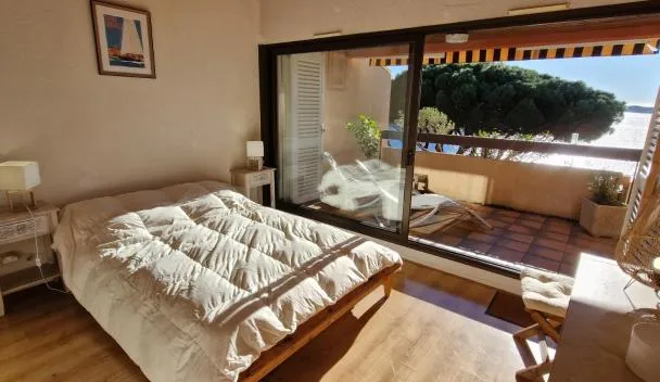 Featuring air-conditioned accommodation with a pool with a view, pool view and a patio, Appartement Premium face à la baie de St-Tropez à 100m de la plage is located in La Garonnette-Plage.