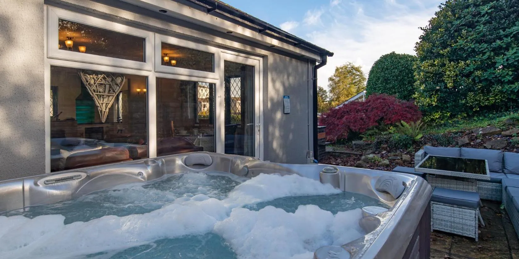 Boasting garden views, Garden Retreat Wales features accommodation with an open-air bath and a patio, around 24 km from Folly Farm.